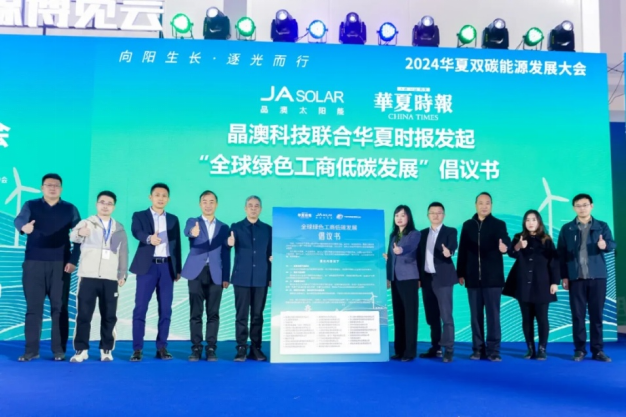 在同期举办的2024年华夏双碳能源发展大会中,晶澳科技携手权威媒体,再次发起“全球绿色工商低碳发展”倡议,得到6家企业的积极响应。晶澳科技将联同首批加入的30家企业及此次第二批加入的6家企业,共同为构建低碳社会、实现可持续发展贡献力量。