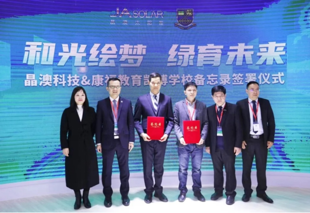展会期间,晶澳科技与康福国际学校凯博学校签订备忘录,标志着晶澳科技产学结合战略再获新突破,将进一步推动双方深度交流与融合,为清洁能源行业可持续发展注入新活力。