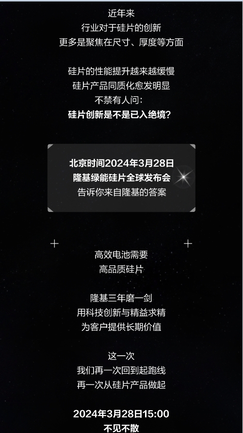 倒计时3天!隆基绿能硅片新品全球发布会即将启动