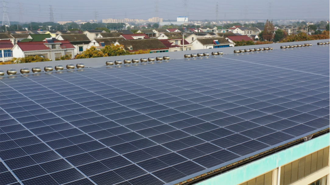 ▲江苏常熟BIPV全面屏电站采用横装方式,适配屋顶形态