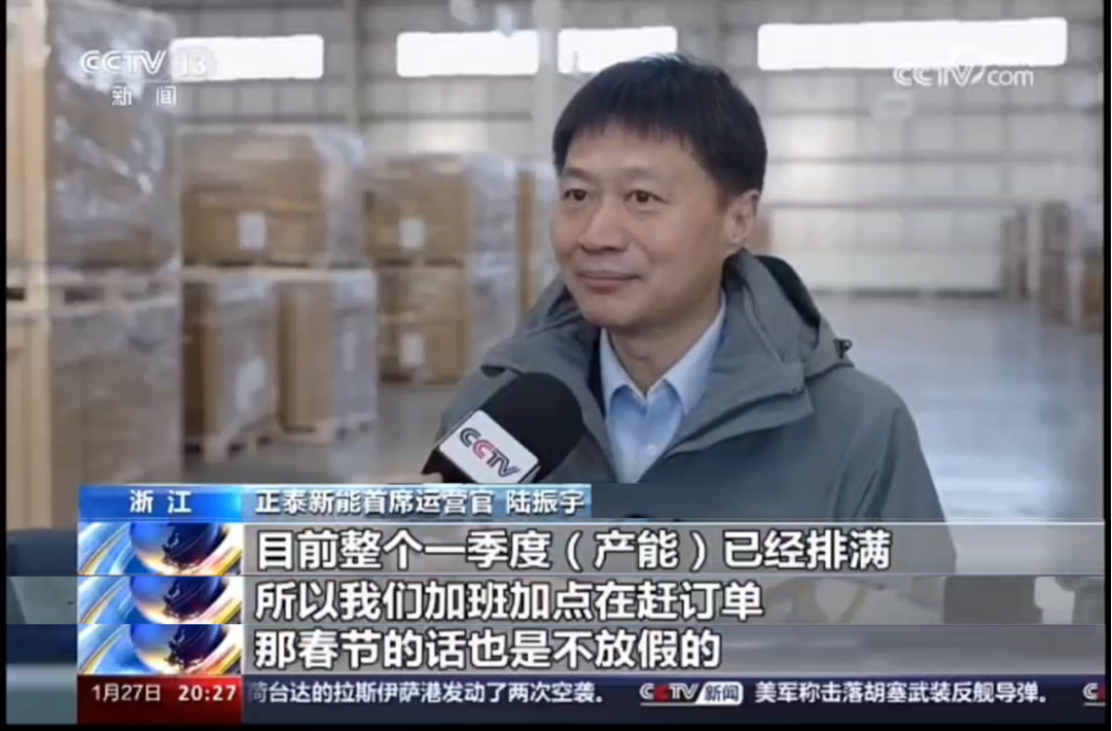 1月27日,央视新闻频道《东方时空》播出《2023年多地外贸创新高 长三角:新质生产力引领进出口高质量发展》专题节目。节目关注2023我国外贸发展情况,提及正泰新能光伏组件畅销海外,助力“新三样”外贸出口稳中提质。