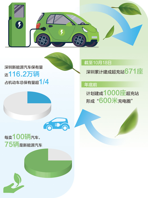 一个个“披着”标准紫色外衣的超充站,在深圳的大街小巷随处可见。截至10月18日,深圳累计建成超充站671座,超充站、充电枪数量超过加油站、加油枪数量。