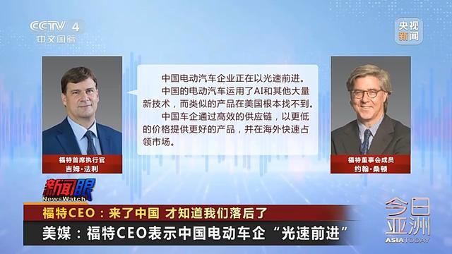 美媒:福特CEO表示中国电动车企“光速前进”