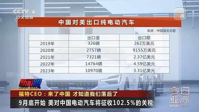 9月底开始美对中国电动汽车将征收102.5%的关税
