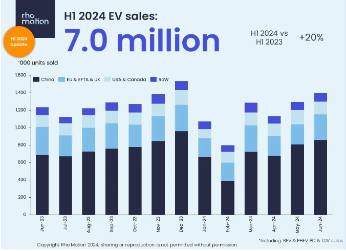 然而,欧洲市场的情况则不容乐观。Rho Motion表示,今年迄今为止,欧洲的电动汽车销售额下降了4%。特别是德国,在补贴削减后,其销售额下降了23%。