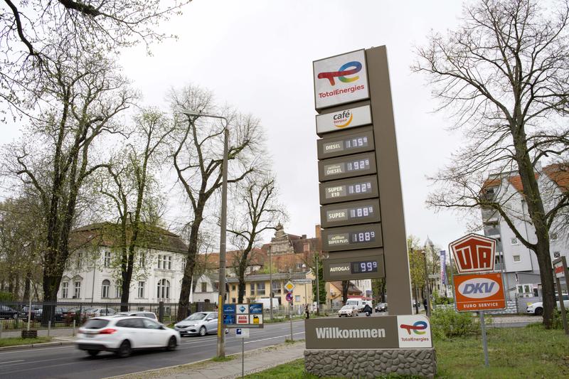 4月3日,汽车驶过德国首都柏林的一家加油站。新华社
