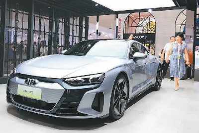 在第四届消博会上,德国品牌奥迪展台展出的新能源汽车。