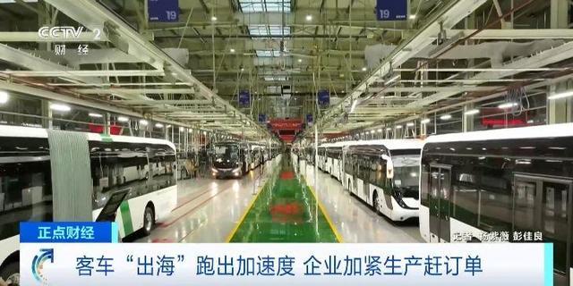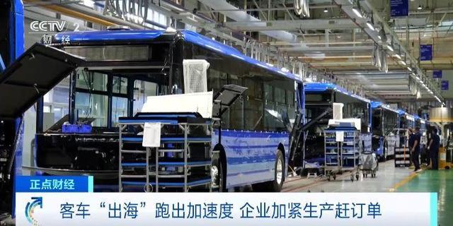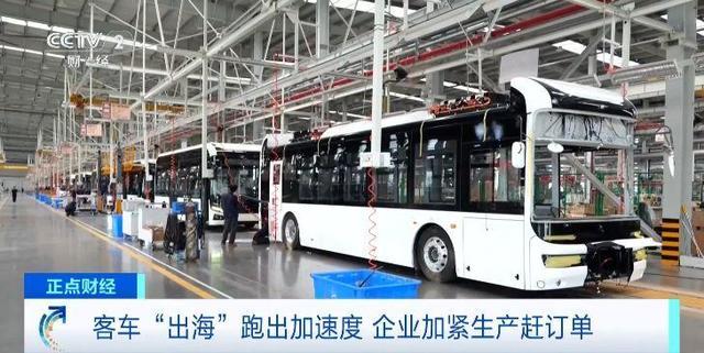 总台央视记者 杨紫薇:在河南郑州的一家客车生产企业的海外车间里,客车即将组装下线,工人们正在进行最后的安装调试阶段。据了解,随着生产效率的提升,出口到海外的客车从原来的25天左右的生产周期,缩短到了现在的大约21天。此外,出口到海外的客车和内销的客车存在一定的区别,比如即将发往挪威的客车,从外观上看,它的颜色会更加鲜明,光泽度、饱和度也会更高,车上配备的也都是电子后视镜。