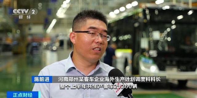 河南郑州某客车企业海外生产计划调度科科长 施前进:整个上半年共生产客车21260辆,同比增长34.86%;其中海外客车出口6500辆,同比增长58%。后半年订单还是很饱和的,我们产线一直处于满负荷生产状态,一直持续到年底。