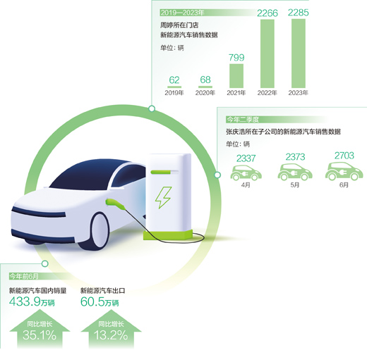 “近几年,大家对新能源汽车的接受度和认可度越来越高,加上车企的促销激励,新能源汽车销售越来越火爆,‘忙’成了我们的常态。”周婷所在门店的市场经理王晓利介绍,2021年门店新能源汽车销售量才799辆,去年达到了2285辆,实现成倍增长。