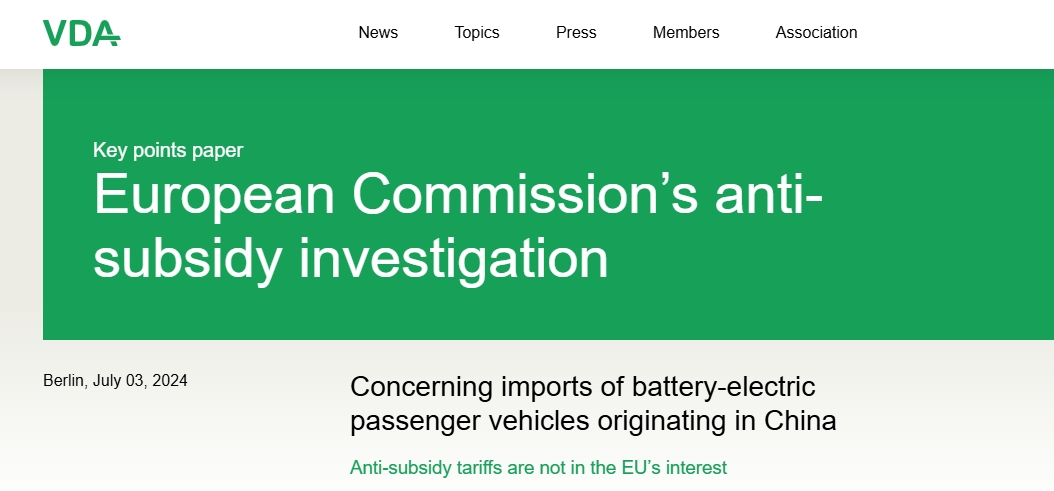 VDA发布声明称,关税正在损害从中国出口的欧洲和美国汽车制造商,而中国采取反制措施的风险将严重打击德国工业,因为德国对中国的出口量很大。