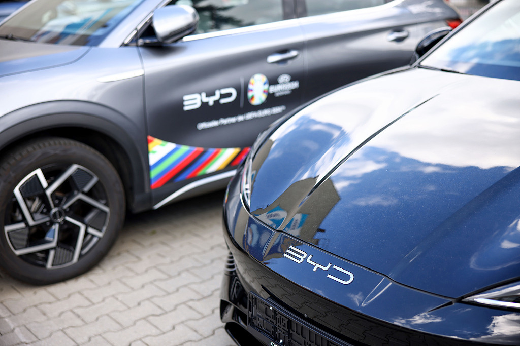 当地时间2024年6月18日,德国柏林,比亚迪公司的电动汽车。资料图(视觉中国)