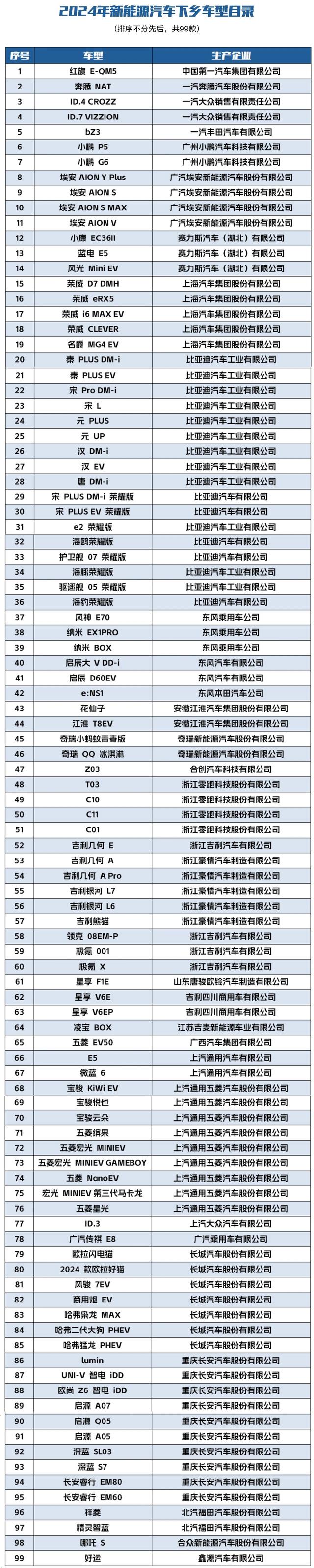 工业和信息化部、国家发展改革委、农业农村部、商务部、国家能源局近日联合印发通知,组织开展2024年新能源汽车下乡活动。本次活动时间为2024年5月—12月,选取适宜农村市场、口碑较好、质量可靠的99款新能源汽车车型,开展集中展览展示、试乘试驾等活动,丰富消费体验,提供多样化选择。组织充换电服务,新能源汽车承保、理赔、信贷等金融服务,以及维保等售后服务协同下乡,补齐农村地区配套环境短板。落实汽车以旧换新、县域充换电设施补短板等支持政策,将“真金白银”的优惠直达消费者。