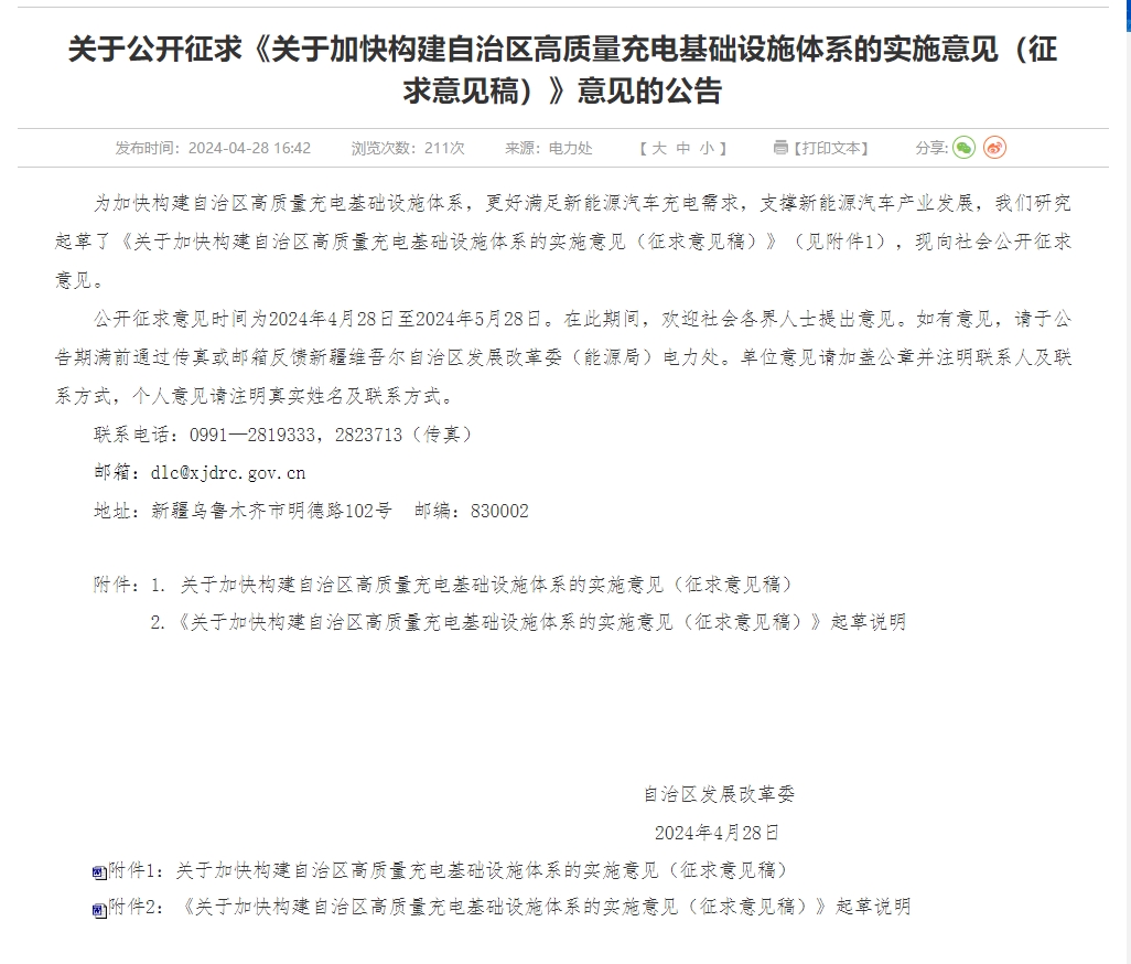 新疆征求意见:打造新能源汽车10分钟充电圈 电动汽车充电时不另收停车费