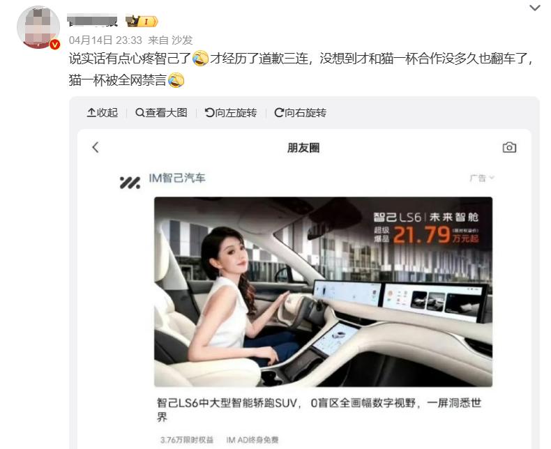 因疑似由“猫一杯”代言,智己汽车又“出圈”了!