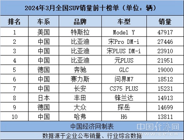 聚焦具体品牌和车型表现。3月,特斯拉Model Y共售出47917辆,以领先第2名20471的巨大优势蝉联SUV月销冠军。但值得注意的是,4月1日起,特斯拉调整了Model Y的售价,售价调高5000元,在当下车市“降价潮”中,其能否继续高光表现还需持续关注。