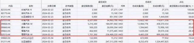 同期其他汽车股的卖空数据也处于高位。比如长城汽车(02333.HK)、小鹏汽车-W(09868.HK)、零跑汽车(09863.HK)、理想汽车-W(02015.HK)占比均超20%,其分别为47.18%、40.17%、28.36%、26.24%。
