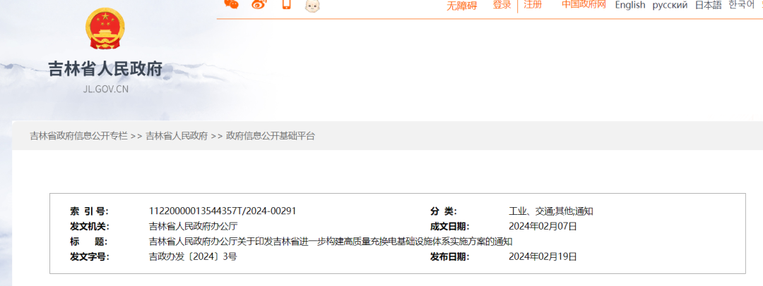 吉林省进一步构建高质量充换电