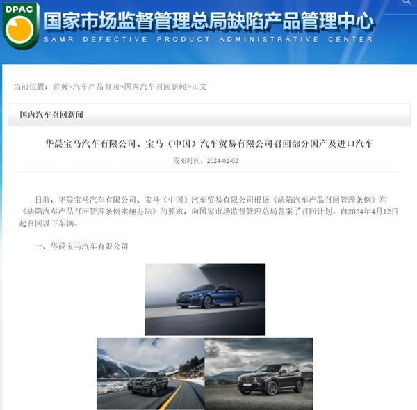 宝马则将自2024年4月12日起,召回共计576辆国产和进口车型,包括363辆国产5系、199辆国产X5、5辆国产X3、8辆进口X4、1辆进口Z4。