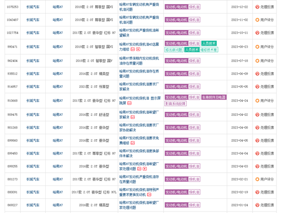 值得注意的是,记者调查发现,在中国网汽车投诉平台也曾收到过多起严重烧机油的投诉,在其他投诉平台哈弗H7烧机油的投诉也不在少数,据记者统计,问题车辆主要集中在2016、2017款,但2018、2019、2021款也有涉及。