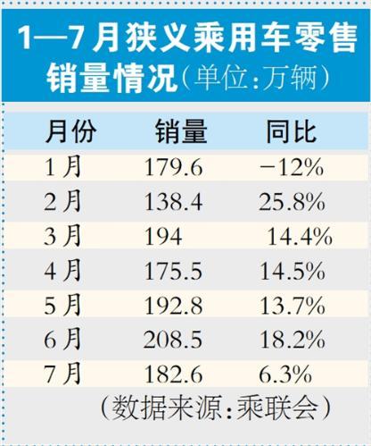 中国汽车流通协会乘用车市场信息联席分会(简称:乘联分会)最新发布的2025年7月国内乘用车产销情况显示,7月全国乘用车市场零售182.6万辆,同比增长6.3%,环比下降12.4%。1—7月累计零售1272.8万辆,同比增长10.1%。乘联分会表示,在传统淡季,7月销售数据显示市场需求仍然较强。同时,“反内卷”浪潮正推动车市降价减少、促销平缓,车市运行日益平稳。