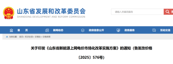 关于印发《山东省新能源上网电价市场化改革实施方案》的通知(鲁发改价格〔2025〕576号)