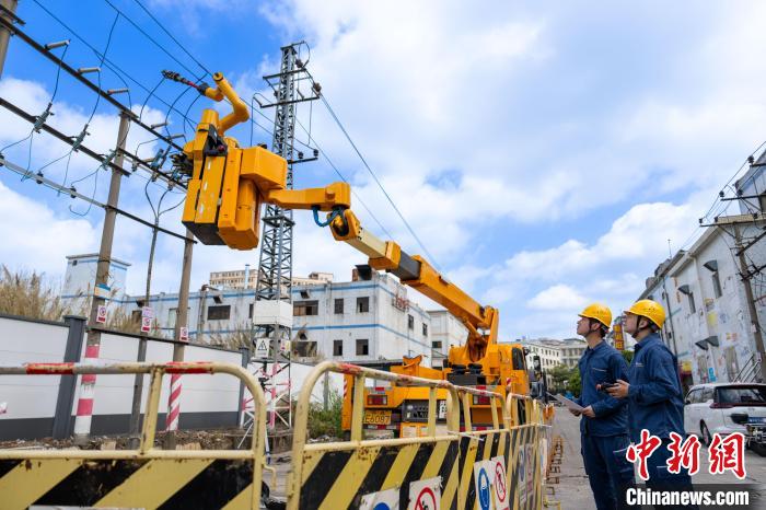 配网带电作业机器人正在进行高空作业。黄志伟 摄