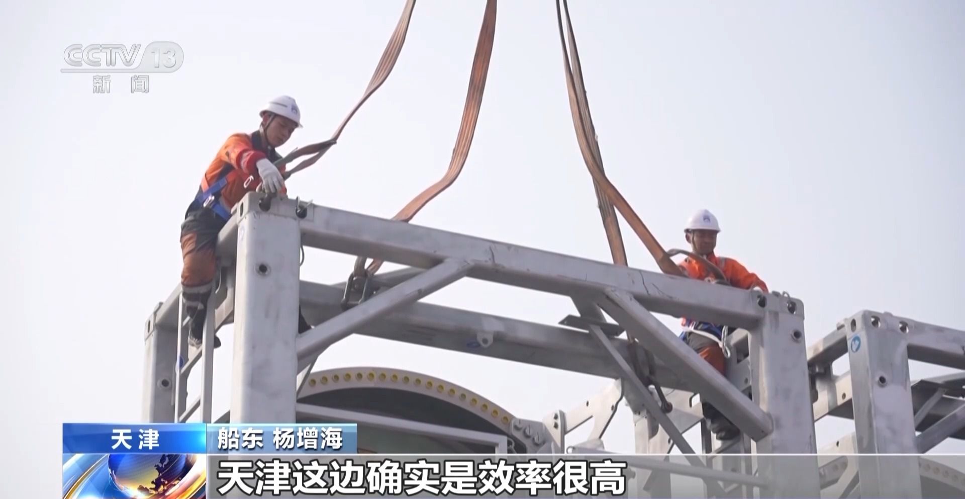 船东 杨增海:我们在天津港大概预期是停留4—5天,但是我们现在可能是三天左右可能就会离港,天津这边确实是效率很高。