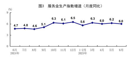 上半年,服务业增加值同比增长5.5%,比一季度加快0.2个百分点。其中,信息传输、软件和信息技术服务业,租赁和商务服务业,交通运输、仓储和邮政业,批发和零售业增加值分别增长11.1%、9.6%、6.4%、5.9%。6月份,全国服务业生产指数同比增长6.0%。其中,信息传输、软件和信息技术服务业,租赁和商务服务业,金融业,批发和零售业生产指数分别增长11.6%、8.4%、7.3%、6.9%。1-5月份,规模以上服务业企业营业收入同比增长8.1%。6月份,服务业商务活动指数为50.1%,服务业业务活动预期指数为56.0%。其中,邮政、电信广播电视及卫星传输服务、互联网软件及信息技术服务、货币金融服务、资本市场服务、保险等行业商务活动指数位于55.0%以上较高景气区间。