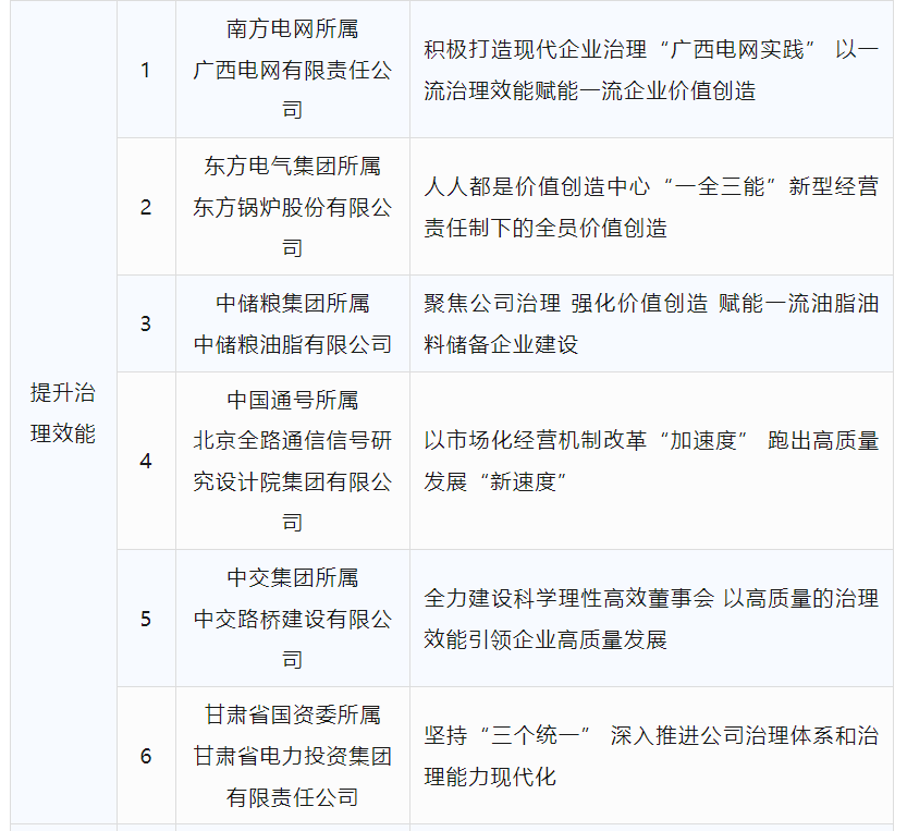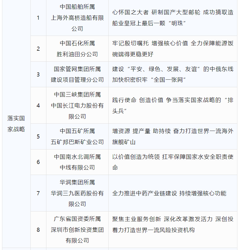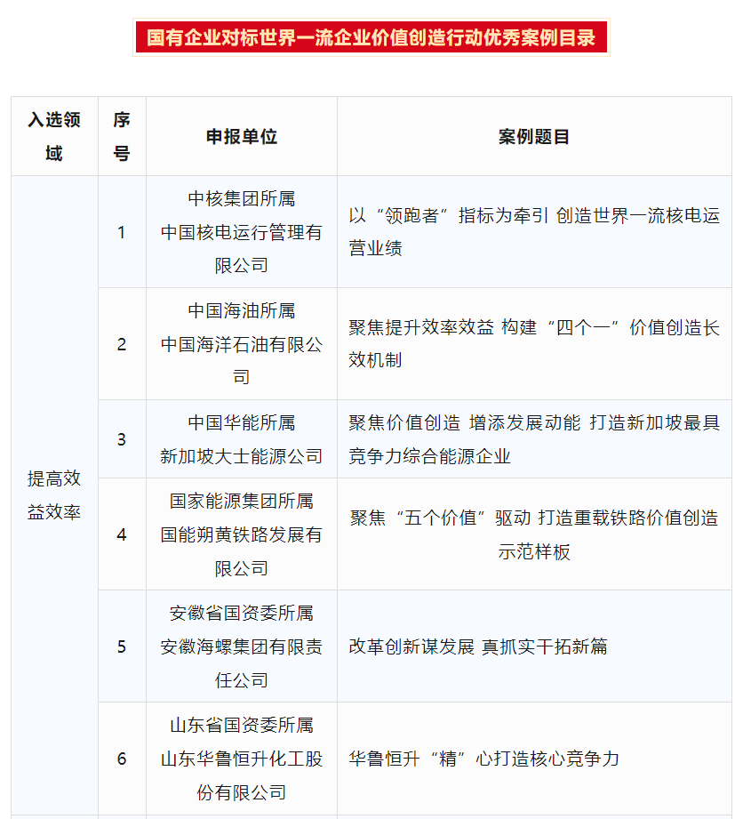 为更好引领企业切实发挥科技创新、产业控制、安全支撑作用,经深入分析论证,聚焦提高效益效率、创新驱动发展、落实国家战略、提升治理效能、加快可持续发展、推动共建共享等6个重点领域,推介出40篇代表性强、创新性突出、推广价值高的优秀案例,强化典型引路作用。现发布优秀案例目录,后续将汇编刊发案例集,促进互学互鉴,以点带面推动国有企业价值创造水平整体提升。