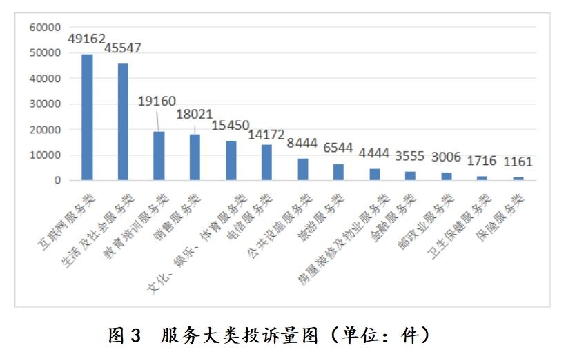 根据2025年一季度内服务大类投诉数据,互联网服务类,生活及社会服务类,教育培训服务类,销售服务类,文化、娱乐、体育服务类居于前五位。与2024年一季度相比,金融服务类,文化、娱乐、体育服务类,公共设施服务类投诉量比重上升;生活及社会服务类,互联网服务类,电信服务类投诉量比重下降。