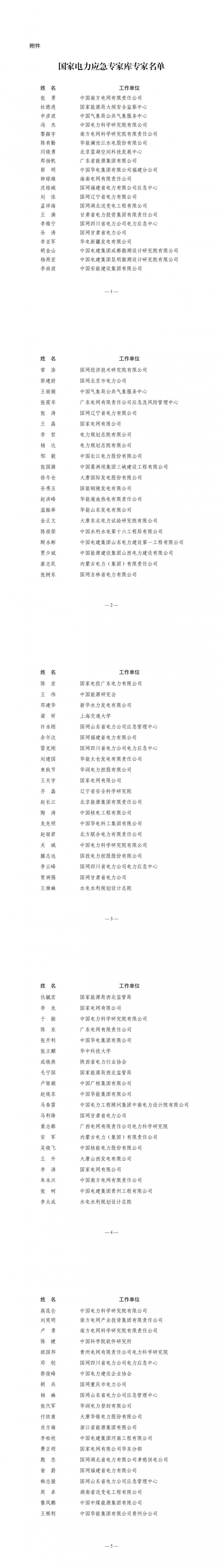 为深入贯彻习近平总书记关于能源安全和应急管理重要论述精神,落实《电力安全生产“十四五”行动计划》《能源电力系统安全生产治本攻坚三年行动方案(2024—2026年)》有关部署,充分发挥电力应急专家支撑作用,我局组织对国家电力应急专家库进行了更新,现公布入库的100位专家名单,并就有关事项通知如下。