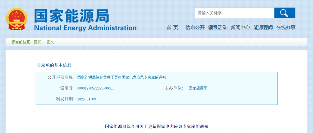 国家能源局综合司关于更新国家电力应急专家库的通知