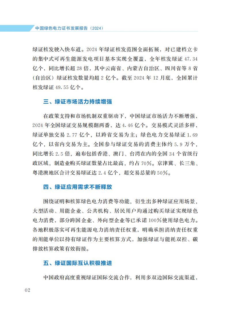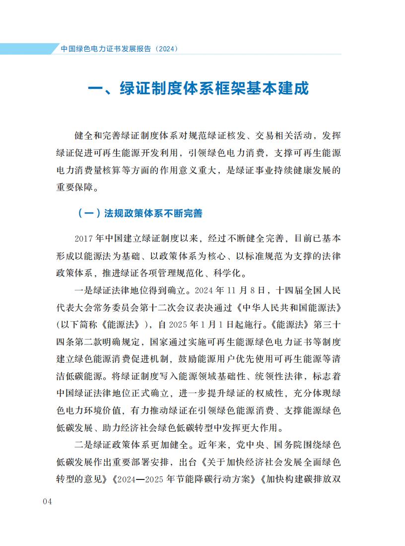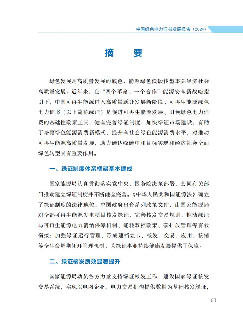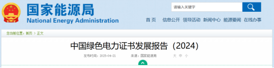 4月21日,国家能源局发布《中国绿色电力证书发展报告(2024)》。报告旨在全面诠释中国绿证制度体系发展脉络, 介绍2024年绿证核发交易、市场培育、应用场景拓展、国际互认等方面的主要进展和成效, 阐明绿证与可再生能源电力消纳责任权重、能耗双控、碳排放核算等衔接的政策考虑, 展望绿证事业发展前景和方向, 以期引起各级政府、企业的高度重视, 获得国内外社会各界广泛关注和支持。