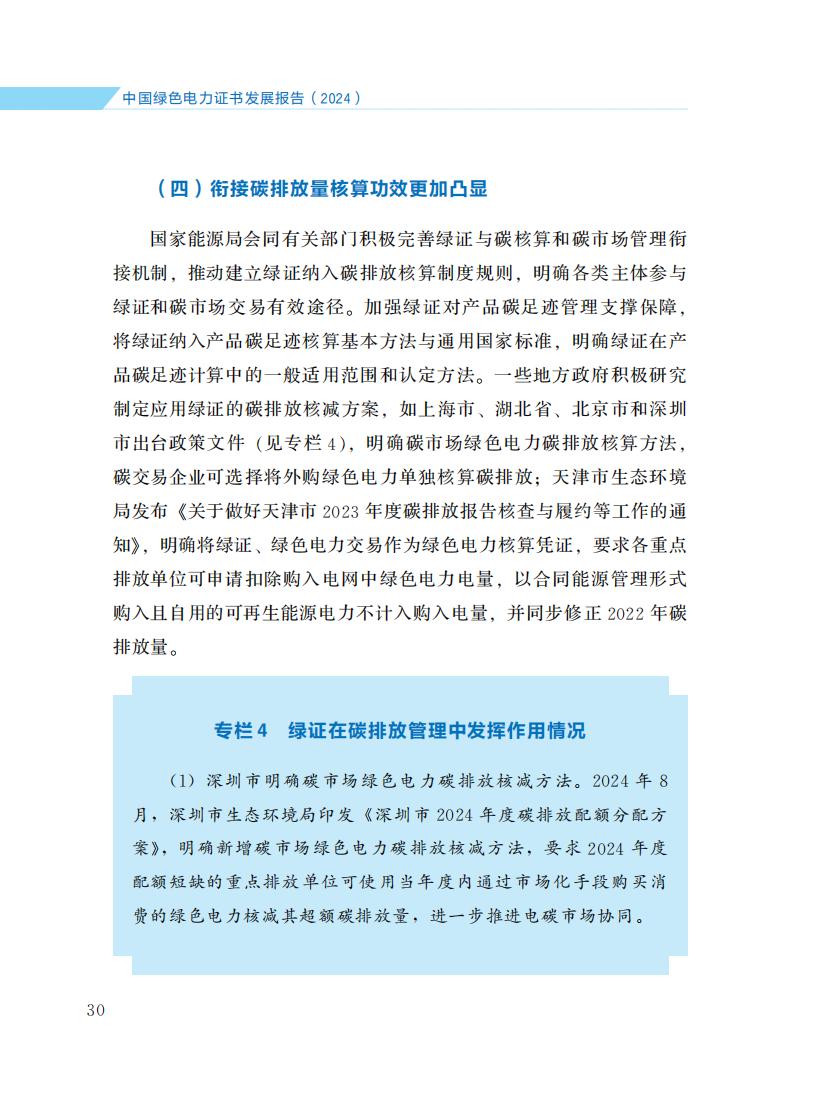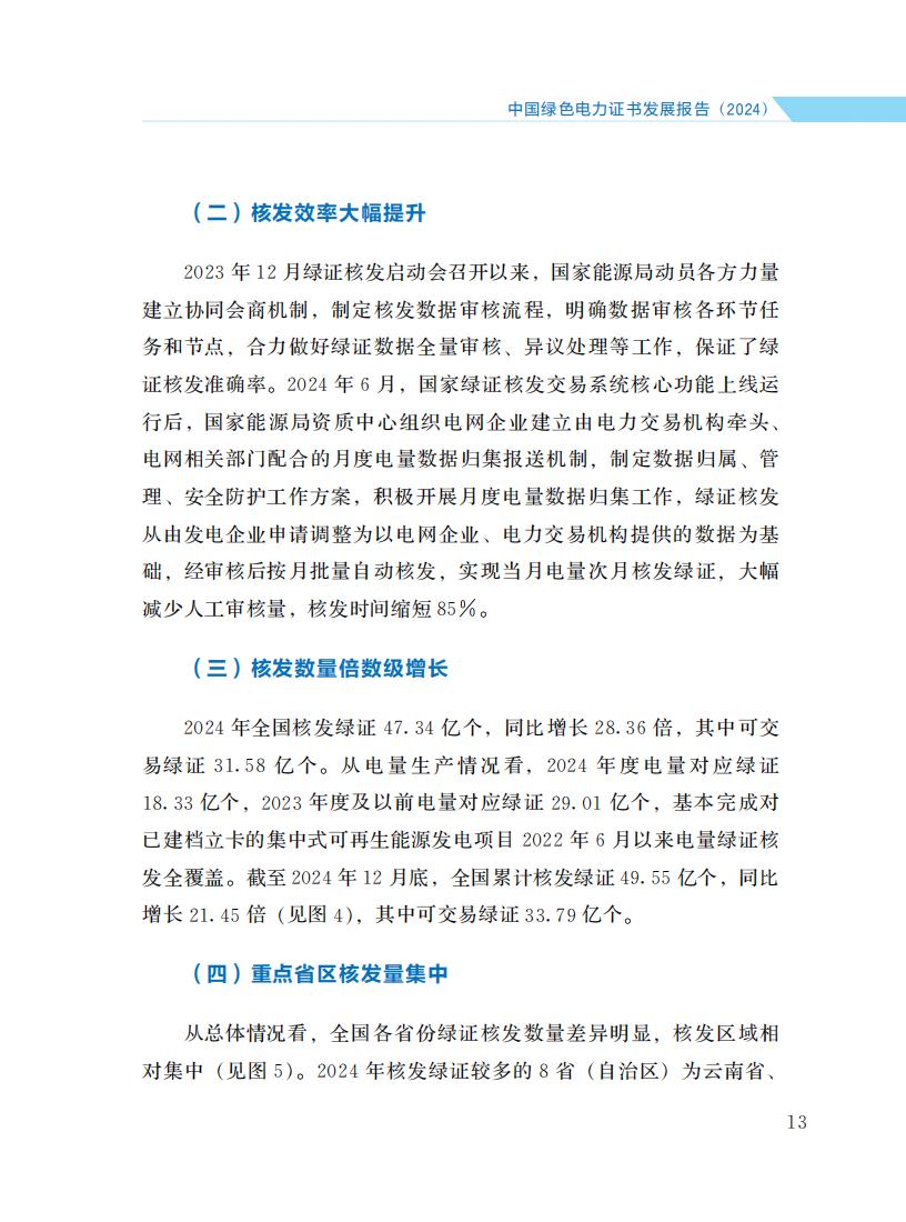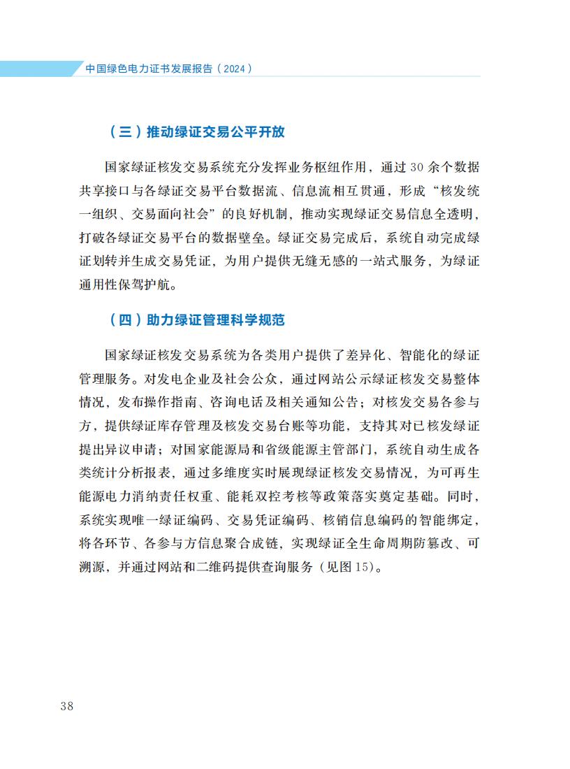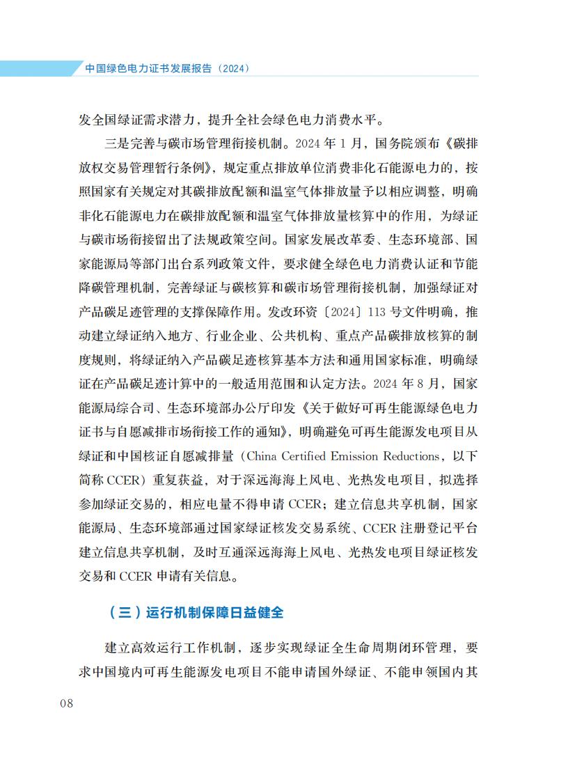 4月21日,国家能源局发布《中国绿色电力证书发展报告(2024)》。报告旨在全面诠释中国绿证制度体系发展脉络, 介绍2024年绿证核发交易、市场培育、应用场景拓展、国际互认等方面的主要进展和成效, 阐明绿证与可再生能源电力消纳责任权重、能耗双控、碳排放核算等衔接的政策考虑, 展望绿证事业发展前景和方向, 以期引起各级政府、企业的高度重视, 获得国内外社会各界广泛关注和支持。