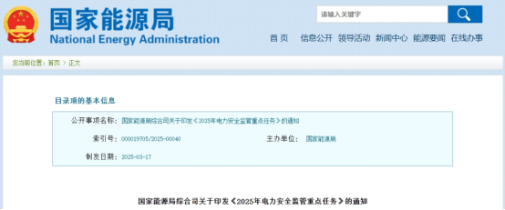 国家能源局综合司关于印发《2025年电力安全监管重点任务》的通知