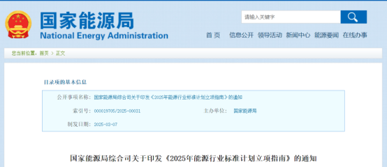 3月10日,国家能源局印发的《2025年能源行业标准计划立项指南》指出,要在能源各领域标准体系框架下提出行业标准计划,坚持急用先行、先进适用、合理布局、协调一致原则,优先建立健全新兴领域标准,同步升级完善传统领域标准,持续加强能源标准体系建设。附件中共列出包括电力、核电、煤炭、油气、新能源和再生能源等在内的8个领域26个专业方向的168个立项重点方向。