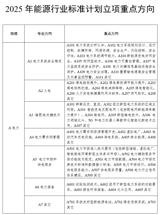 附件:2025年能源行业标准计划立项重点方向