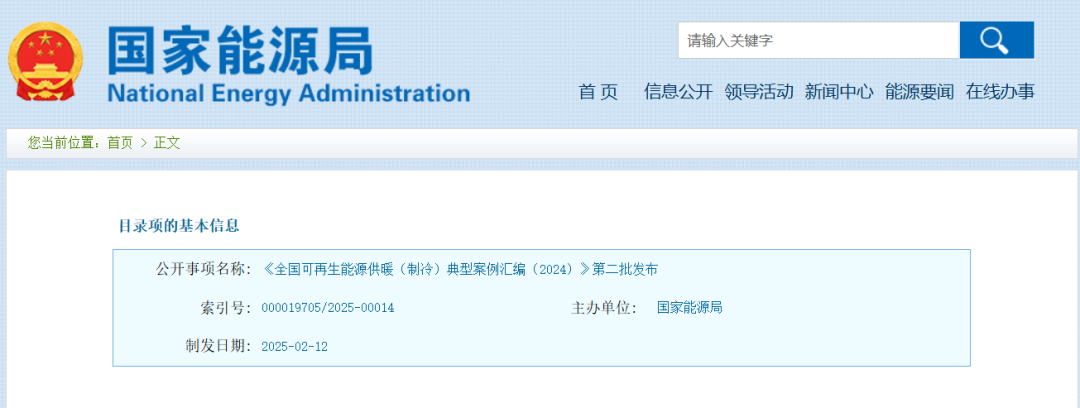 国家能源局网站2月17日消息,《全国可再生能源供暖(制冷)典型案例汇编(2024)》第二批发布。