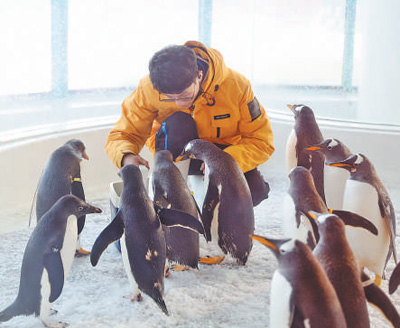 常天晟2016年来到极地公园担任企鹅保育员,从那时起,他几乎每天和企鹅待在一起。常天晟和同事共同组成“企鹅管家”团队,负责观察并记录每一只企鹅的身体、精神状况,为企鹅的健康“保驾护航”。