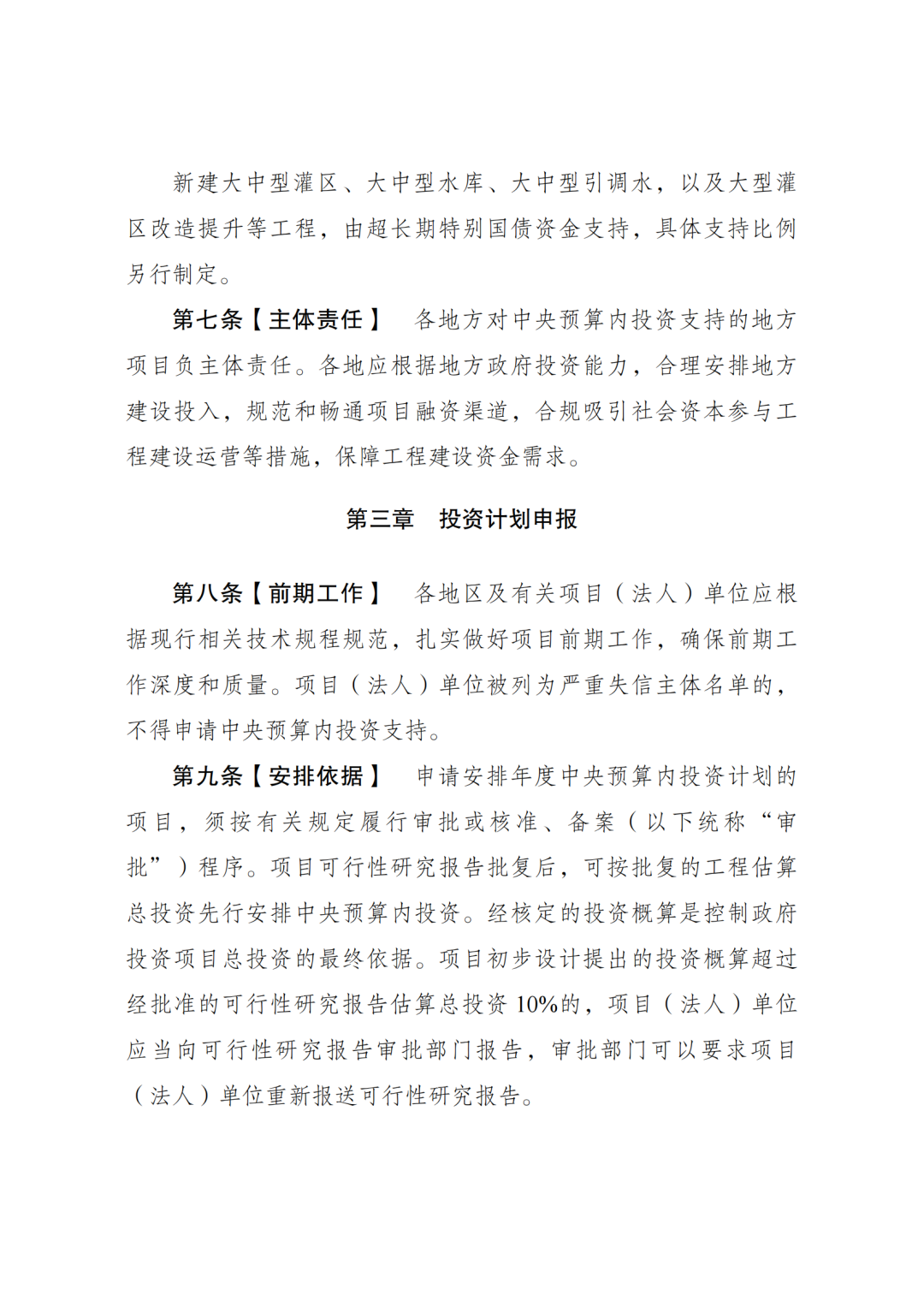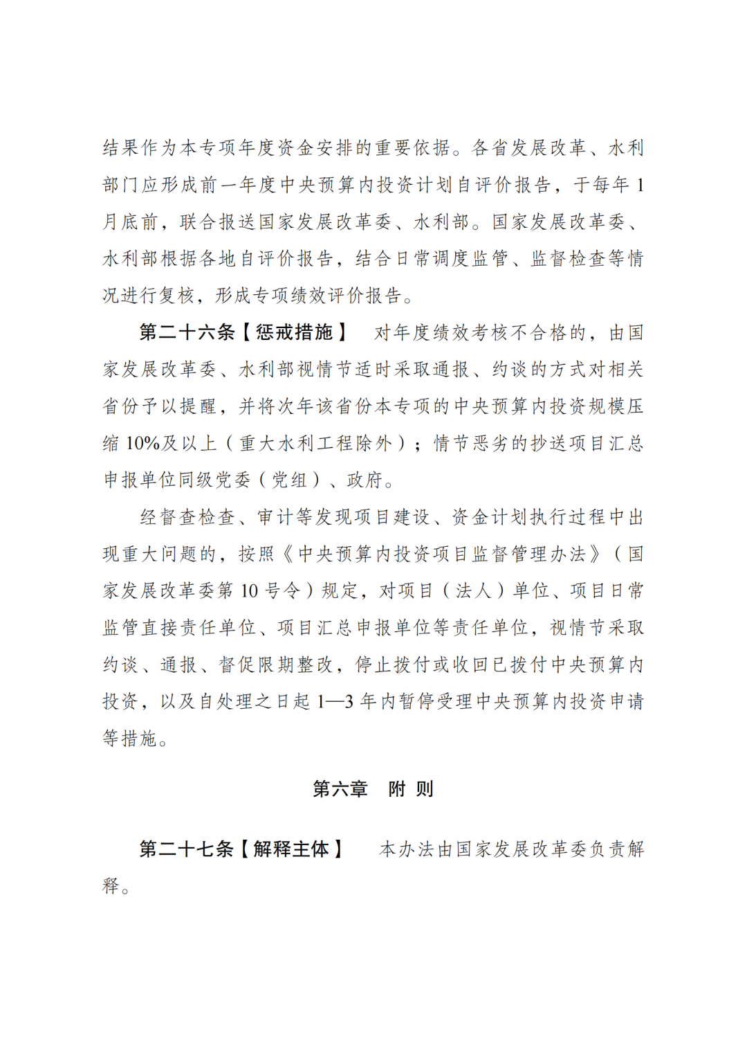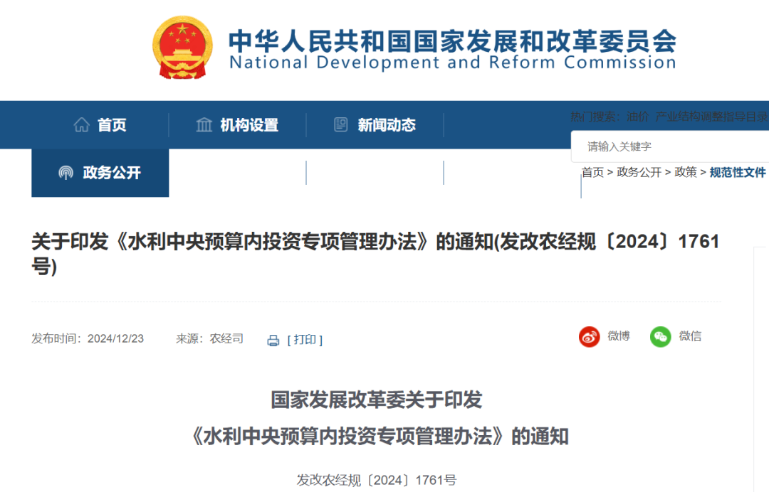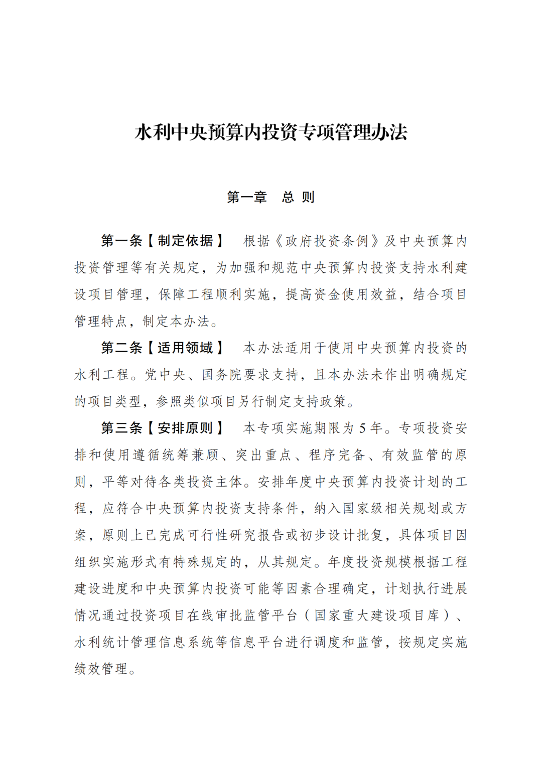 据国家发改委网站12月23日消息,为进一步加强水利领域中央预算内投资管理,切实提高中央资金安排使用的科学性、精准性、规范性,有效发挥中央预算内投资的引导带动作用,根据《政府投资条例》和中央预算内投资管理的相关规定,国家发改委制定了《水利中央预算内投资专项管理办法》并印发。