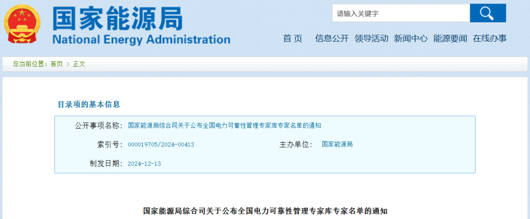 据国家能源局网站12月19日消息,国家能源局发布《关于公布全国电力可靠性管理专家库专家名单的通知》。为进一步完善电力可靠性管理,充分发挥专家在理论研究、现场核查和数据分析等工作中的技术支撑和智囊助手作用,国家能源局在电力企业、行业协会及科研院校推荐、遴选审核和公示等工作基础上,公布全国电力可靠性管理专家库专家名单,共212名。国家能源局派出机构和电力企业因工作需要,可从电力可靠性管理专家库中选取有关专家。