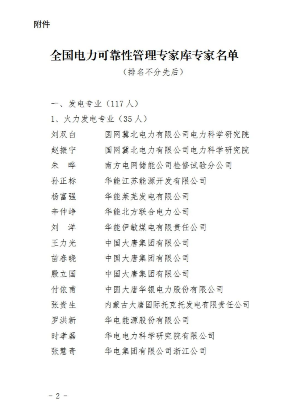 国家能源局综合司关于公布全国电力可靠性管理专家库专家名单的通知