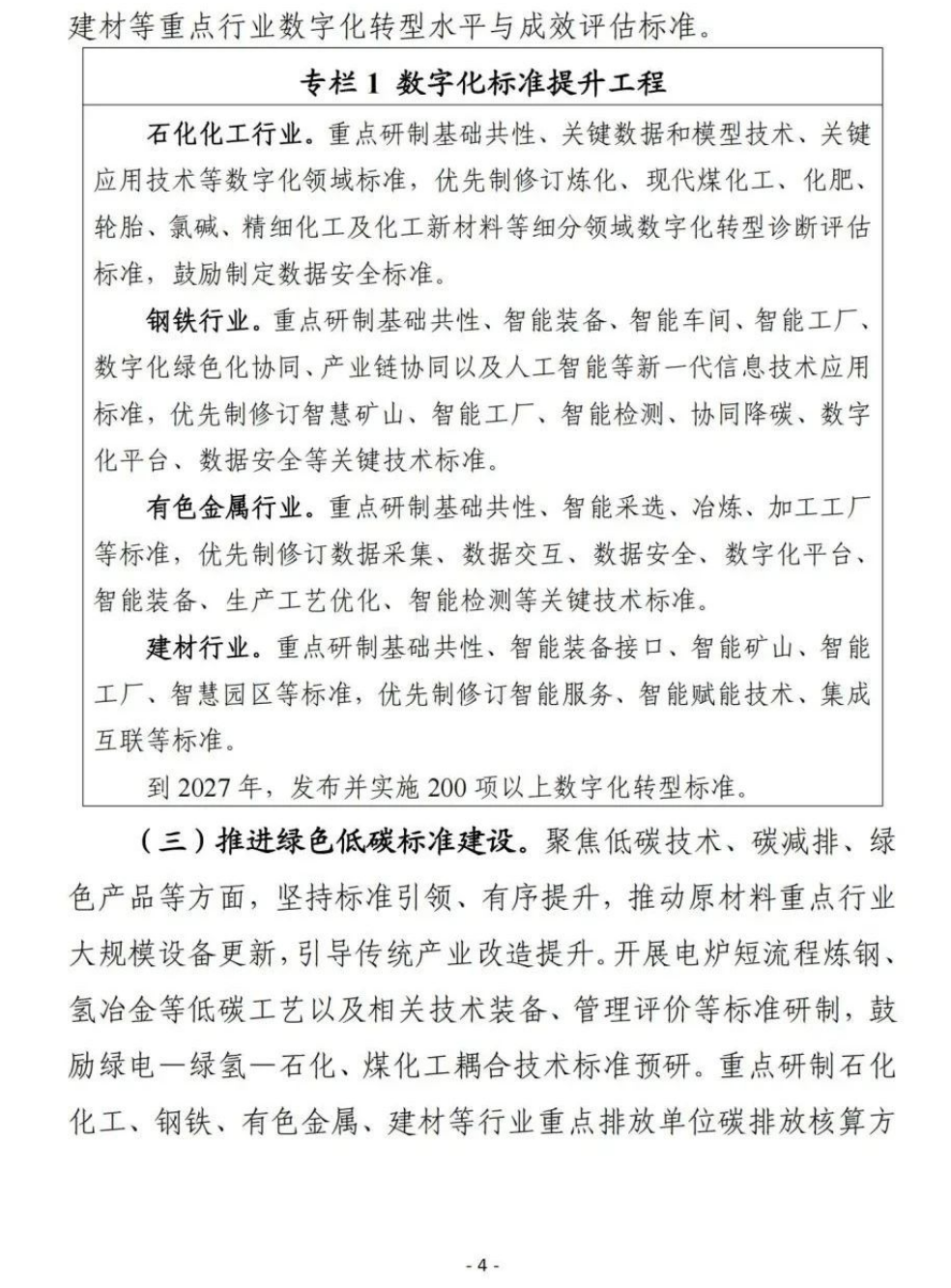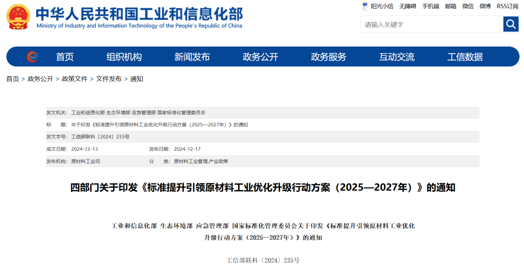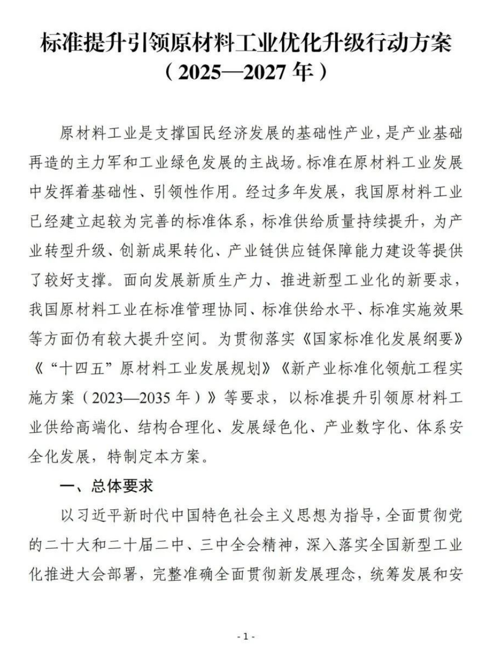 四部门关于印发《标准提升引领原材料工业优化升级行动方案(2025—2027年)》的通知