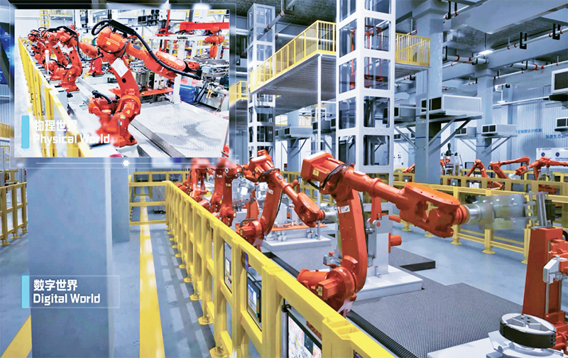 我国既是制造大国也是网络大国,发展工业互联网具有独特优势和广阔前景。图为2024年5月19日,基于海尔集团卡奥斯工业互联网平台打造的元宇宙未来工厂(海尔上海洗衣机互联工厂),实体产线与虚拟产线同步运行,生产人员通过数字孪生大屏监测和控制实体产线运行,开展生产调度、故障诊断等工作。 中国工业互联网研究院供图