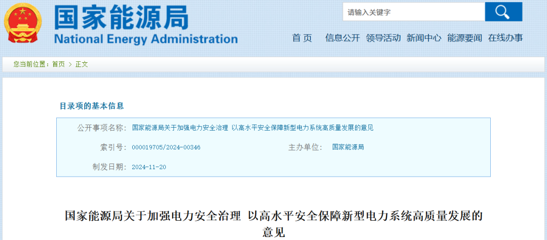 国家能源局关于加强电力安全治理 以高水平安全保障新型电力系统高质量发展的意见
