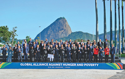 ■ 当今世界百年变局加速演进,人类发展面临的机遇和挑战前所未有。作为世界主要大国领导人,我们应该不畏浮云遮望眼,秉持命运共同体意识,扛起历史责任,展现历史主动,推动历史进步。中国主办二十国集团领导人杭州峰会时,首次将发展议题放到宏观经济政策协调的中心位置,这次里约热内卢峰会把“构建公正的世界和可持续的星球”作为主题,并决定成立“抗击饥饿与贫困全球联盟”。从杭州到里约热内卢,我们都致力于同一个目标,即建设一个共同发展的公正世界