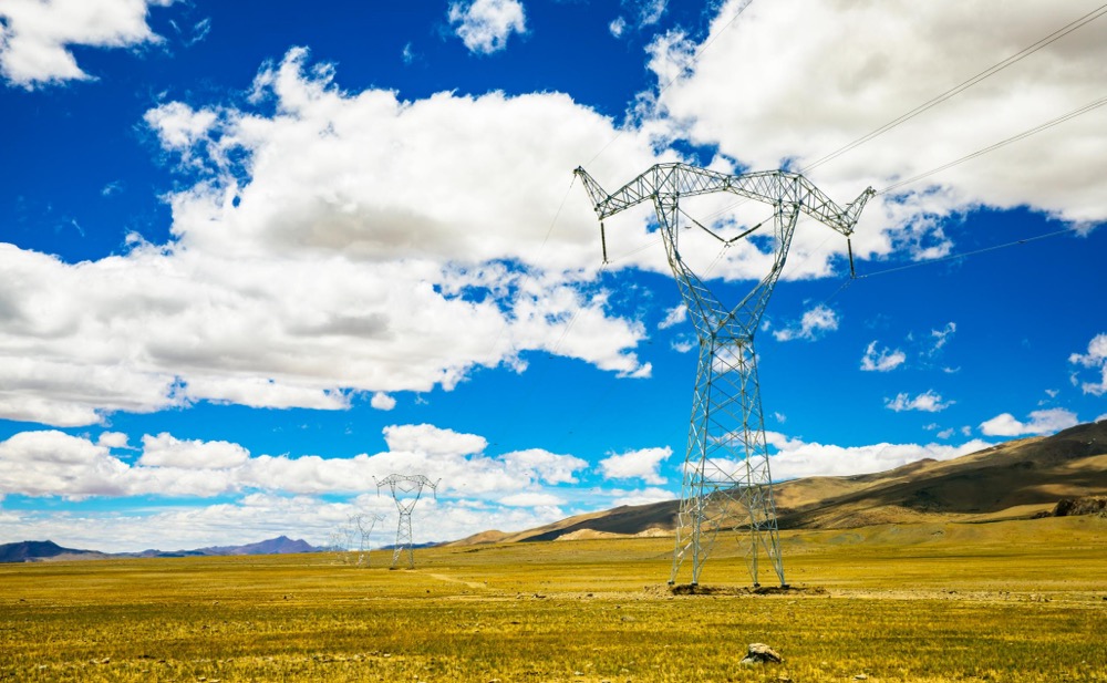 ▲图为阿里联网工程日土羊景观塔输电线路。