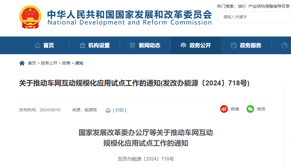 9月10日,国家发改委等四部门发布的《国家发展改革委办公厅等关于推动车网互动规模化应用试点工作的通知》指出,全面推广新能源汽车有序充电,扩大双向充放电(V2G)项目规模,丰富车网互动应用场景,以城市为主体完善规模化、可持续的车网互动政策机制,以V2G项目为主体探索技术先进、模式清晰、可复制推广的商业模式,力争以市场化机制引导车网互动规模化发展。
