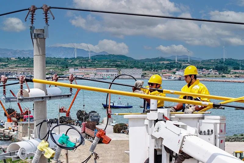 国网山东电力带电作业员工开展接引流线作业,确保迎峰度夏期间电力可靠供应